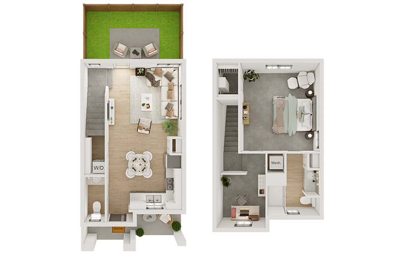 1-Bed 1.5-Bath + FLEX 900 SQ FT 15 Homes Available